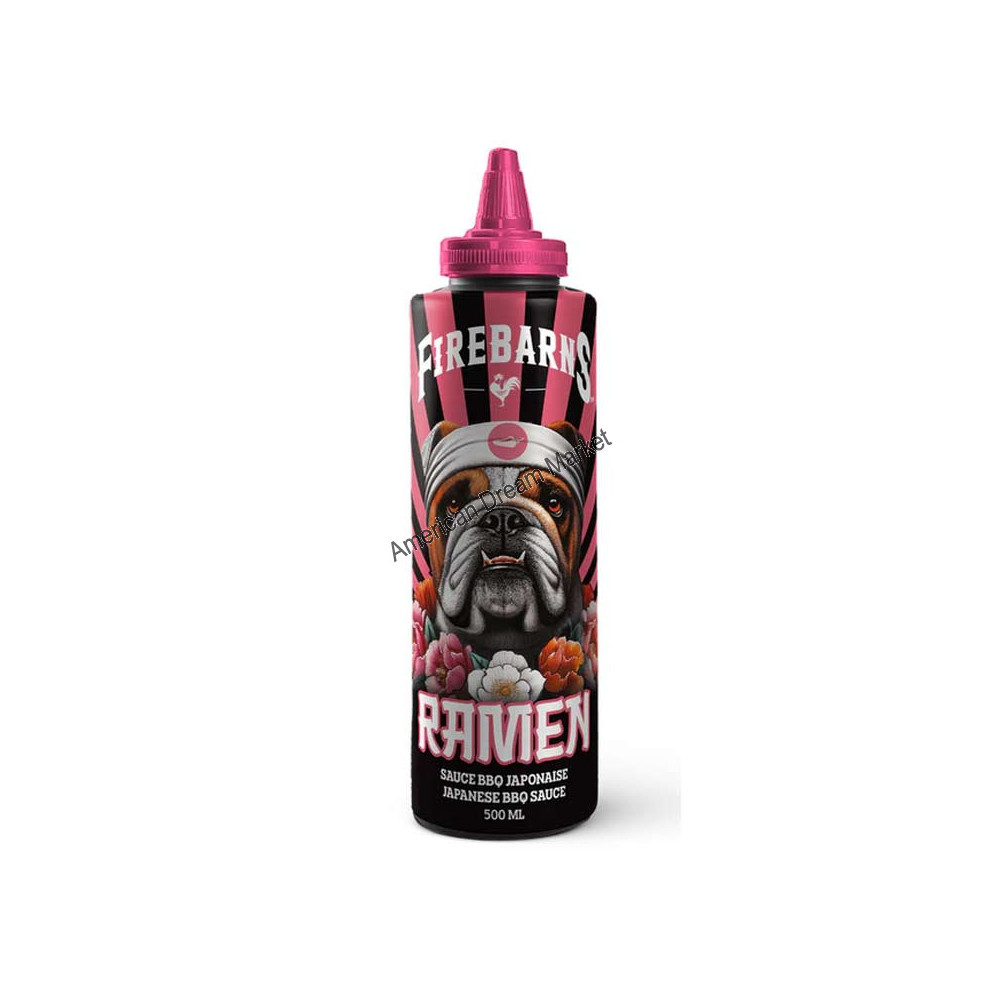 Ingrédients : sauce soja (eau, soja, sel, alcool), sucre de canne, vinaigre de riz, sauce mirin (sirop de maïs, eau, assaisonnement a base de riz fermenté (eau, riz, sirop de maïs, alcool, sel), vinaigre, benzoate de sodium), pâte de tomate, sambal oelek firebarns (purée de piment forts, vinaigre blanc, eau, sel, sucre, gomme xanthane, sorbate de potassium, benzoate de sodium), ail, gingembre, oignon vert, huile de sésame.